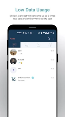 যোগাযোগের খরচ নিয়ে আর চিন্তা নয়! Brilliant Connect ব্যবহারের মাধ্যমে আপনি প্রচলিত অন্যান্য অ্যাপের তুলনায় প্রায় ৬ গুণ কম ডেটা ব্যবহার করেন, যা আপনার ইন্টারনেট সাশ্রয় করে। পাশাপাশি, Brilliant Out কলের সাহায্যে বিশ্বের যেকোনো ফোনেই সাশ্রয়ী মূল্যে কথা বলার সুযোগ রয়েছে। আর যেসব বন্ধু Brilliant Connect ব্যবহার করেন, তাদের সাথে ভয়েস ও ভিডিও কল সম্পূর্ণ বিনামূল্যে। শুধু তাই নয়, ছবি, ভিডিও, ফাইল, লোকেশন, এবং ভয়েস মেসেজ আদান-প্রদান করুন অনায়াসে। গ্রুপ চ্যাটের মাধ্যমে আপনার প্রিয়জনদের সাথে এক ছাদের নিচে থাকুন, যা আপনার সামাজিক বন্ধনকে আরও সুদৃঢ় করবে।