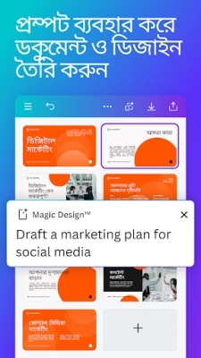সামাজিক মাধ্যমের জন্য নজরকাড়া কন্টেন্ট তৈরি করা এখন আপনার জন্য বাঁ হাতের খেল। Instagram, Facebook, বা LinkedIn-এর জন্য ট্রেন্ডি ডিজাইন, ব্যানার, এবং কোলাজ তৈরি করুন অনায়াসে। আপনার প্রজেক্টকে আরও সমৃদ্ধ করতে, Canva-এর বিশাল কনটেন্ট লাইব্রেরী থেকে অ্যাক্সেস করুন ২০ লক্ষেরও বেশি রয়্যালটি-মুক্ত ছবি, হাজার হাজার ভিডিও, ২৫ হাজারেরও বেশি অডিও ট্র্যাক এবং ৫০০টিরও বেশি ফন্ট। এমনকি এর যাদুকরী টেক্সট-টু-ইমেজ টুলের মাধ্যমে আপনার নিজের ছবিও তৈরি করতে পারেন। যারা আরও গভীরে যেতে চান, তাদের জন্য রয়েছে Canva Pro। প্রিমিয়াম টেমপ্লেট, ছবি, ভিডিও, লোগো মেকার এবং গ্রাফিক্সের মতো অত্যাধুনিক উপাদানের সাথে এটি আপনার ডিজাইন ক্ষমতাকে বহুগুণে বাড়িয়ে দেবে। এক ক্লিকেই ছবির পটভূমি অপসারণ বা ম্যাজিক রিসাইজের মতো সুবিধাগুলো আপনার সৃজনশীলতাকে দেবে নতুন মাত্রা। Canva সকলের জন্য — ব্যক্তিগত নকশা, ব্যবসায়িক প্রচার, শিক্ষামূলক উপকরণ বা সামাজিক মাধ্যমের প্রচারণার জন্য এটিই আপনার চূড়ান্ত পছন্দ।