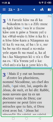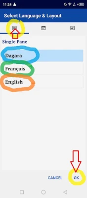 ডাগারা ধর্মগ্রন্থ পাঠের এক নতুন অভিজ্ঞতা নিয়ে এসেছে এই অ্যাপটি। যারা ডাগারা ভাষার পাশাপাশি ফরাসি বা ইংরেজি সংস্করণে ধর্মগ্রন্থ অধ্যয়ন করতে চান, তাদের জন্য এটি একটি আদর্শ সঙ্গী। উপরের ডান কোণায় থাকা ছোট 'বই' আইকনে ট্যাপ করে আপনি সহজেই আপনার পছন্দসই স্ক্রিন বিন্যাস বেছে নিতে পারবেন। কেবল ডাগারা সংস্করণ দেখতে চাইলে 'একক প্যান' নির্বাচন করুন। ডাগারা উপরে এবং ফরাসি বা ইংরেজি নিচে সমান্তরালভাবে দেখতে চাইলে 'দুটি প্যান' ব্যবহার করুন। অথবা, প্রতিটি ডাগারা শ্লোকের পর তার ফরাসি বা ইংরেজি অনুবাদ দেখতে চাইলে 'শ্লোক অনুযায়ী' মোডটি বেছে নিন। এটি আপনাকে গভীর অধ্যয়ন এবং তুলনামূলক পাঠে সহায়তা করবে।