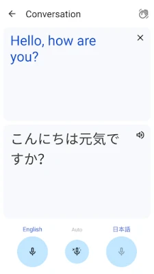 Google Translate-এর মাধ্যমে ১০৮টির বেশি ভাষায় নির্বিঘ্নে অনুবাদ করুন। টাইপ করে, ক্যামেরা ব্যবহার করে, বা অফলাইনে তাৎক্ষণিক পাঠ্য ও চিত্র অনুবাদ পান। দ্বিভাষিক কথোপকথন অনুবাদ করুন এবং গুরুত্বপূর্ণ শব্দ ও বাক্য সেভ করে রাখুন।
