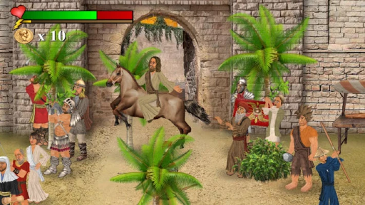 খেলার নিয়ন্ত্রণ ব্যবস্থা অত্যন্ত স্বজ্ঞাত এবং শেখা সহজ। যেকোনো মুহূর্তে বিরতি দিতে বা ইন-গেম নির্দেশিকা দেখতে আপনার হেলথ মিটারে ট্যাপ করুন। D-Pad-এ দুবার ট্যাপ করে দৌড়ান, 'A' বাটনে আক্রমণ করুন, এবং 'G' ব্যবহার করে প্রতিপক্ষকে আঁকড়ে ধরুন (দিক সহ বা ছাড়া যেকোনো বাটন থ্রো বা হোল্ডের জন্য)। 'P' দিয়ে বস্তু কুড়িয়ে নিন বা ফেলে দিন, নির্দেশনার সাথে ছুঁড়ে মারুন। 'U' কোনো বস্তু ব্যবহার করতে এবং 'P' ও 'U' একসাথে বস্তু একত্রিত করতে কাজে লাগে। 'Eye' আইকন ব্যবহার করে ঘুমান, অথবা ধরে রেখে ধ্যান করুন। 'Meter' আপনাকে বিরতি নিতে বা খেলা থেকে বের হতে সাহায্য করে, আর 'Book' বাইবেলের রেফারেন্স দেখায়। জুম ইন/আউট করতে পিঞ্চ করুন। এছাড়াও, খেলার ভেতরে পুঁথি বা অন্যান্য চরিত্রের মাধ্যমে লুকানো ইঙ্গিতগুলির দিকে নজর রাখুন। আপনার ডিভাইসের সাথে সঙ্গতি রেখে সেরা পারফরম্যান্স নিশ্চিত করতে "অপশনস" মেনুতে গিয়ে "পপুলেশন" সেটিংসটি আপনার রুচি অনুযায়ী পরিবর্তন করে নিন।